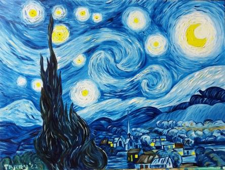 Téma: Van Gogh – Csillagos éj, 30x40cm farost, olajfesték